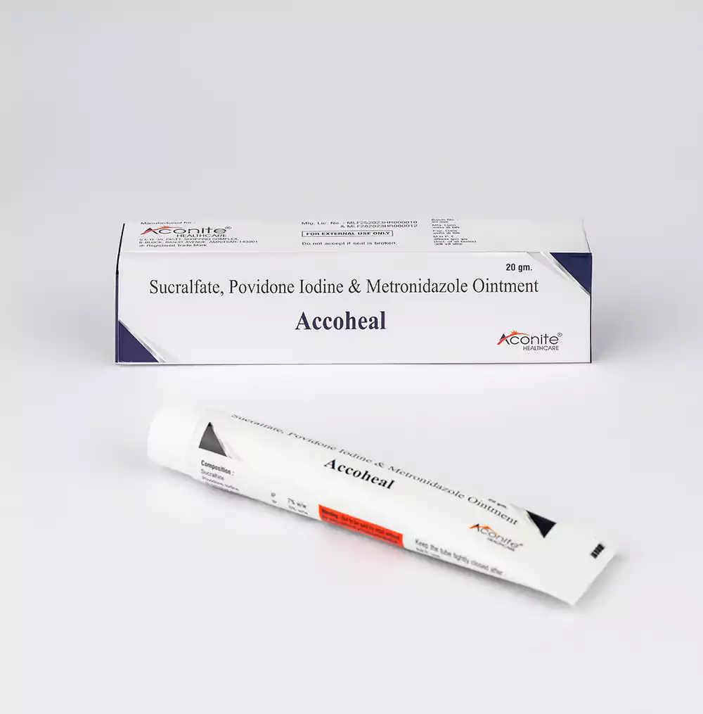 Composition: Sucralfate- 70 mg Metronidazole- 10 mg Povidone Iodine – 50 mg